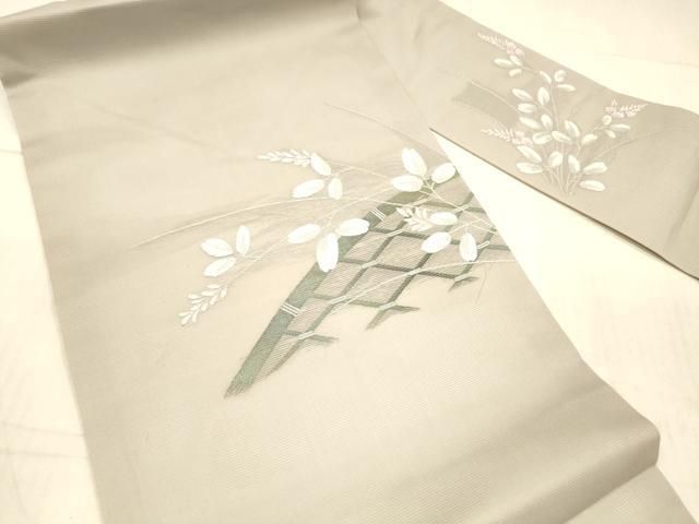 平和屋着物 夏物 九寸名古屋帯 籬草葉文 銀糸 正絹 cm