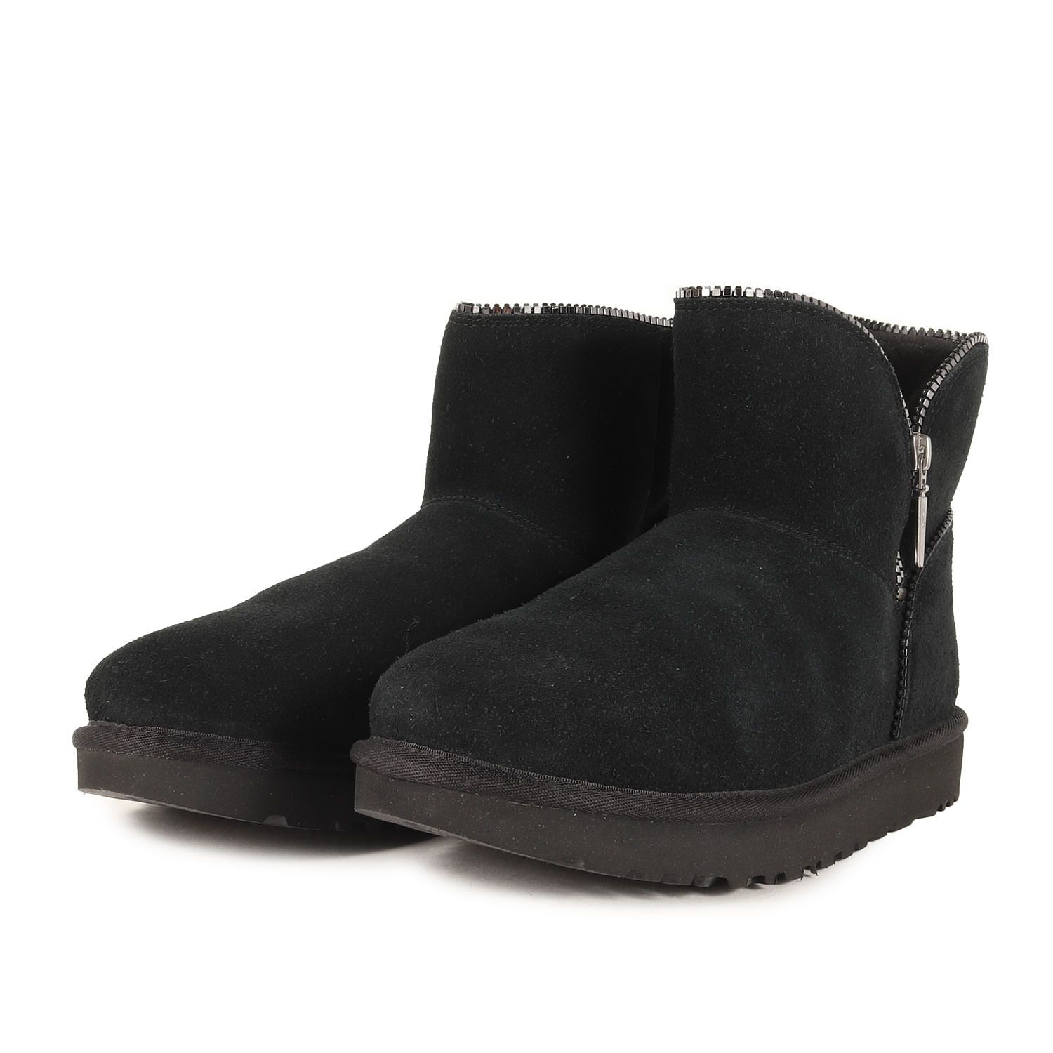 カッティングとジップの装飾が特徴のミニ丈のムートンブーツになります。