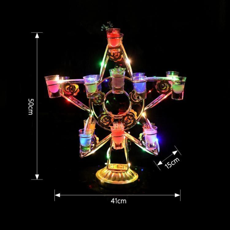 グラス 付LED酒グラス棚 テキーラ観覧車 星型 USB充電式 コードレス 操作簡単 雰囲気作り カクテルグラスホルダー 酒カップホルダー ワインラック クラブ カラオケ 居酒