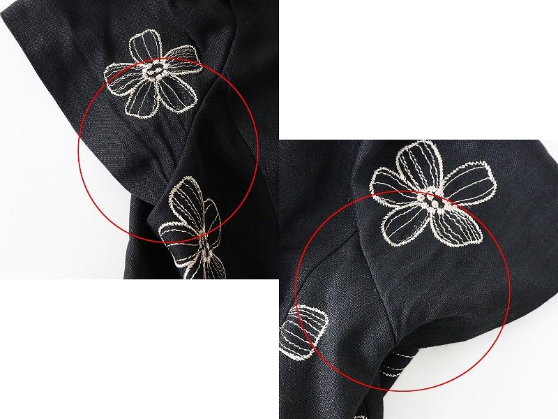 【品名】人気 2025SS エムズグレイシー M'SGRACY フラワー刺繍 ショートスリーブフレアワンピース 40 ブラック┃花柄ドレス