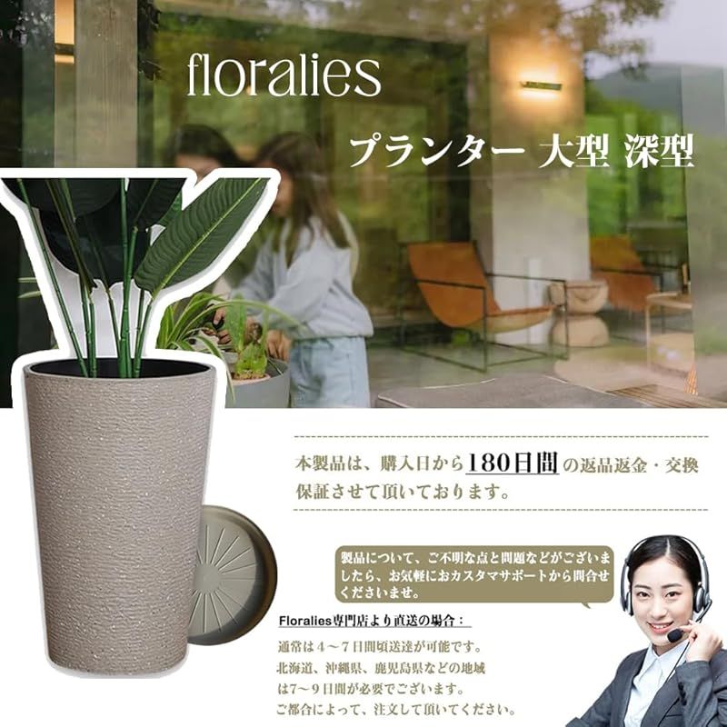 Floralies プランター 大型 おしゃれ 受け皿付き 植木鉢 軽量 屋内 屋外用 深型 高さ42 cm 排水穴付 観葉植物 鉢 当たり キャメル 0