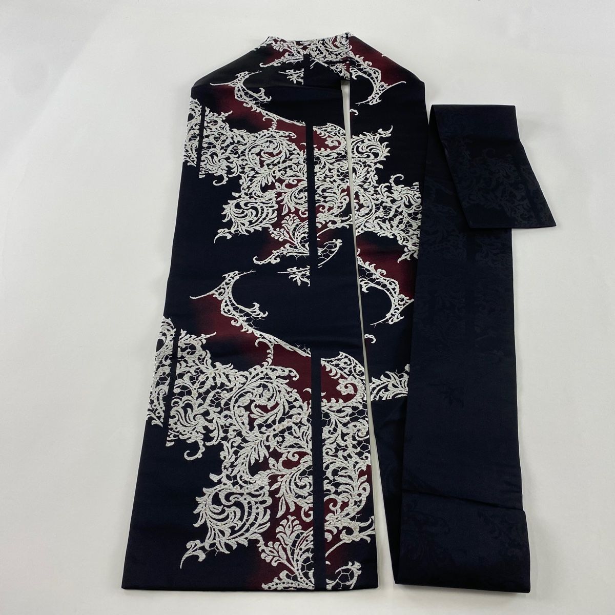 名古屋帯 花唐草 金銀糸 唐織 黒 正絹