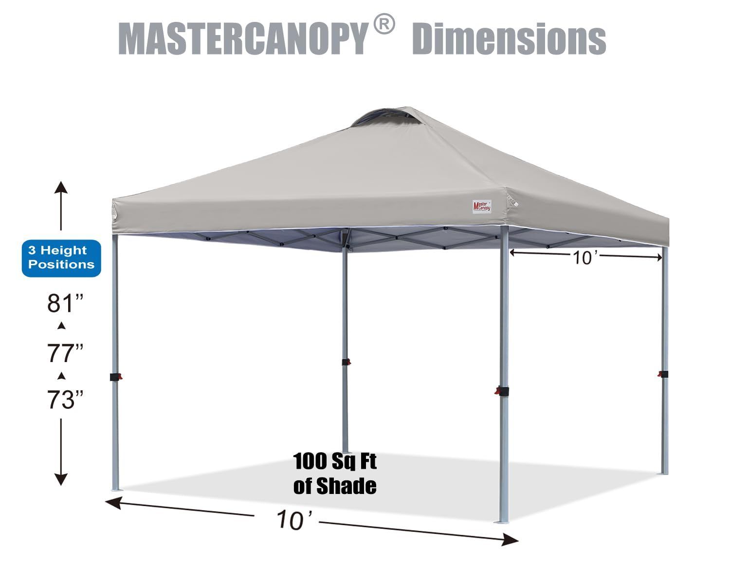 マスターキャノピー(MASTERCANOPY)ワンタッチタープテント 2M/2.5M/3M 三段階調節 スチールフレーム 風抜けベンチレーション 耐水 UVカット サンシェード 日除け 商用 アウトドア用(キャスターバッグ ペグ ロープ ウェイトバッグ付き)(3Mグレー)
