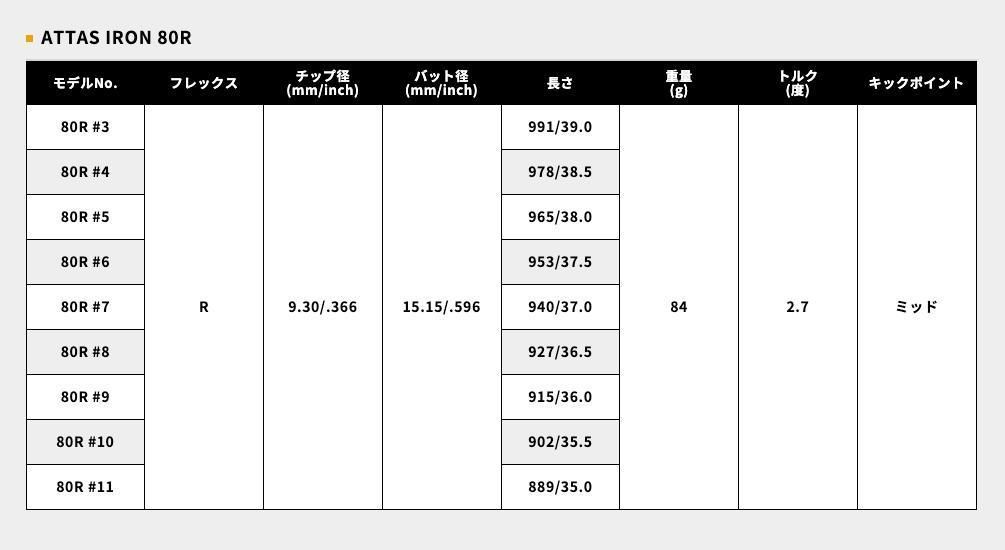 ■ シャフト:ATTAS IRON 80 R リシャフト 84g