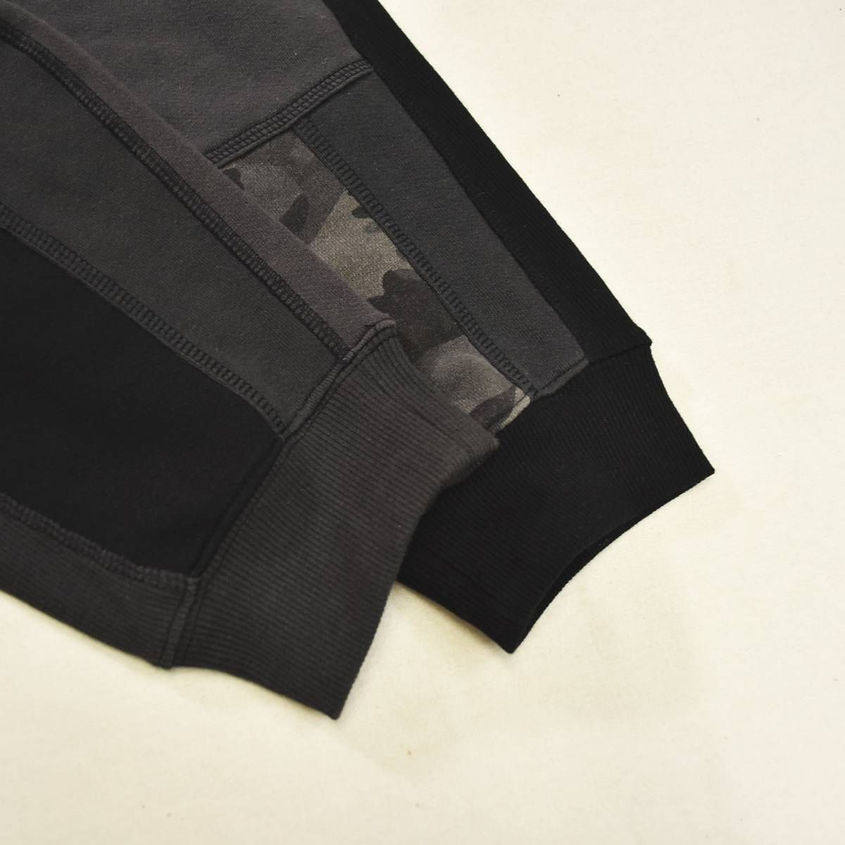 ウノピゥウノウグァーレトレ 1 piu uguale 3 パッチワーク クレイジーパターン RELAX スウェット パンツ トレーナー 裏地 パイル XL ブラックxグレーx迷彩柄 ストリート カジュアル ウェア メンズ
