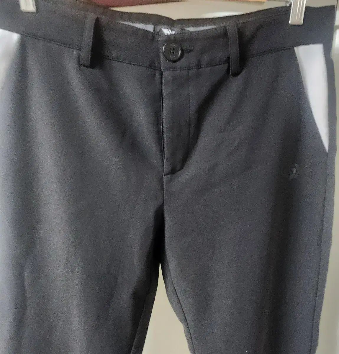 PXG ゴルフ ブラック カラー ズボン 34インチです。横 LINEに白 バイカラーが入り エレガントな 感じを与えます。ウエスト、ヒップ、裾 など 全体的な デザイン 確認してください。コメント 無ければ すぐ 安全決済してください!
