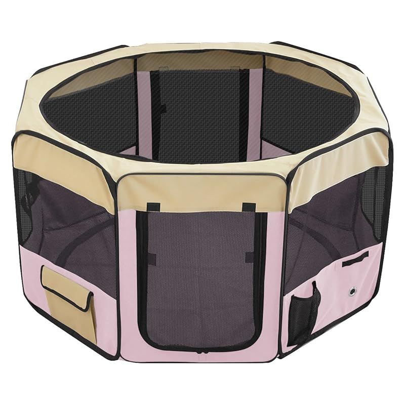 在庫 ottostyle.jp 折りたたみ八角形ペットサークル Lサイズ ピンク 直径114 cm×高さ62 cm メッシュ屋根付き 屋内 屋外 アウトドア 1