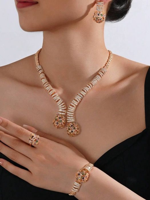 ジュエリー レディース セット 豪華なパールグロス カラフルジルコニアジュエリーセット4点 ブライダルパーティーの ギフト パキスタン サウジアラビア向け