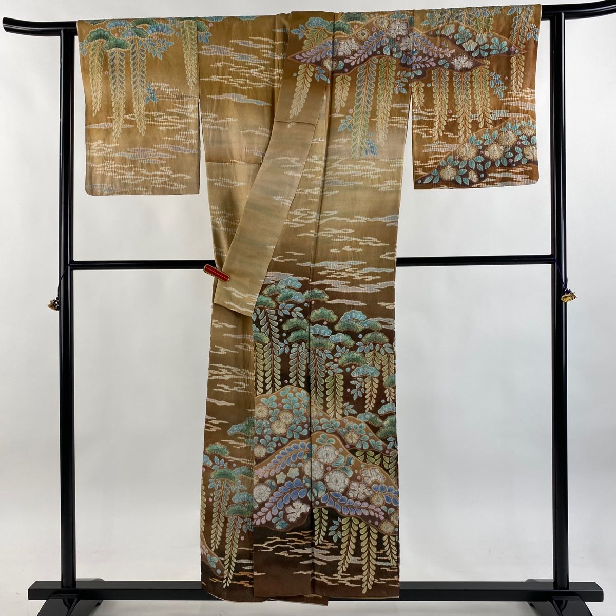 訪問着 身丈153 cm 裄丈62.5 S 袷 辻が花 笠松 銀通し ぼかし 薄茶色 正絹