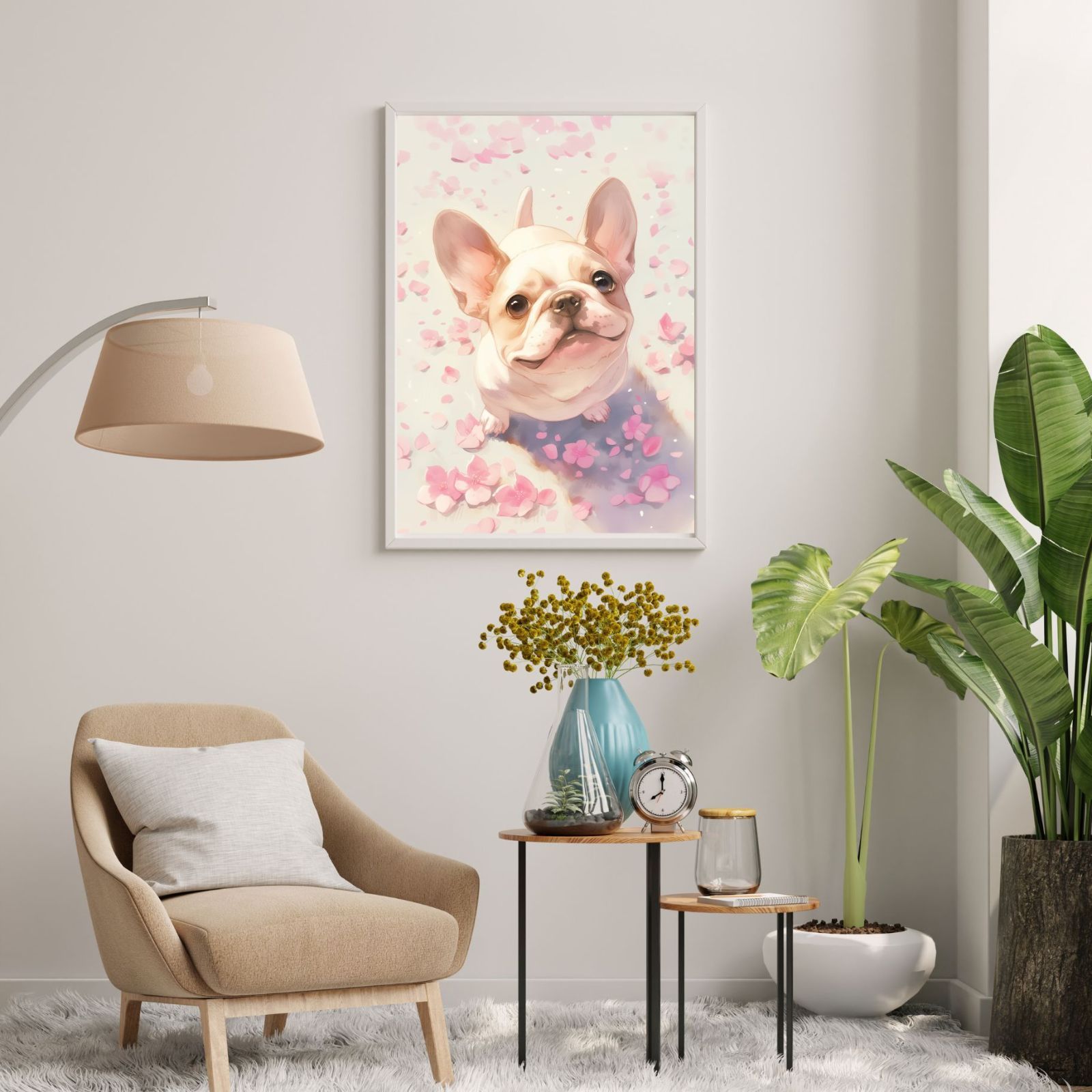 春らしいフレンチブルドッグ犬のドッグアートで、新しい生活をスタートさせてください。