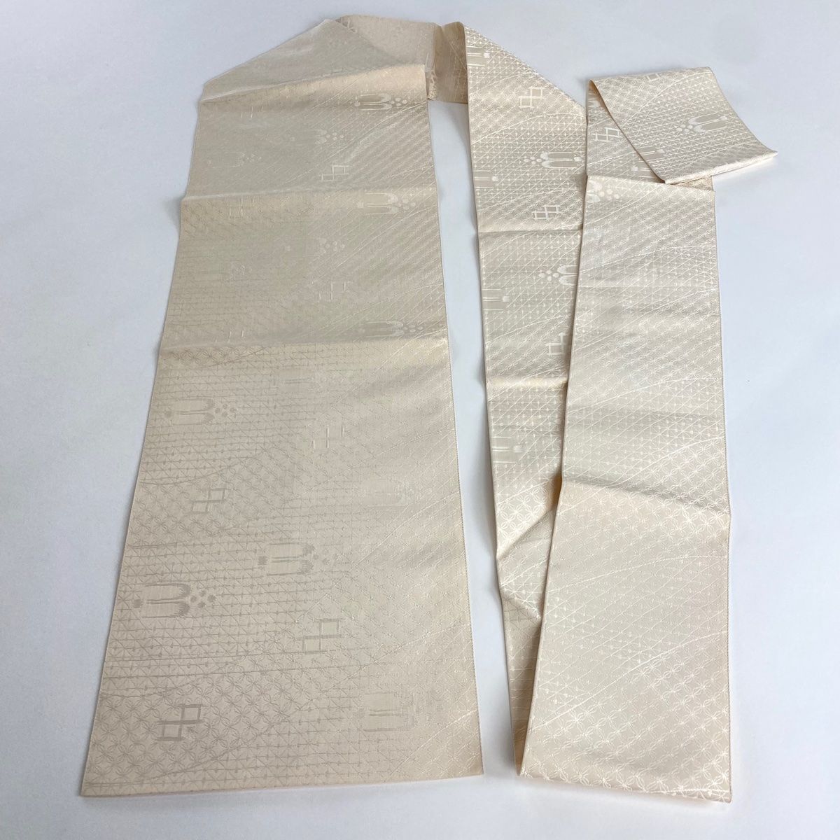 名古屋帯 秀品 八寸名古屋帯 幾何学模様 クリーム 正絹