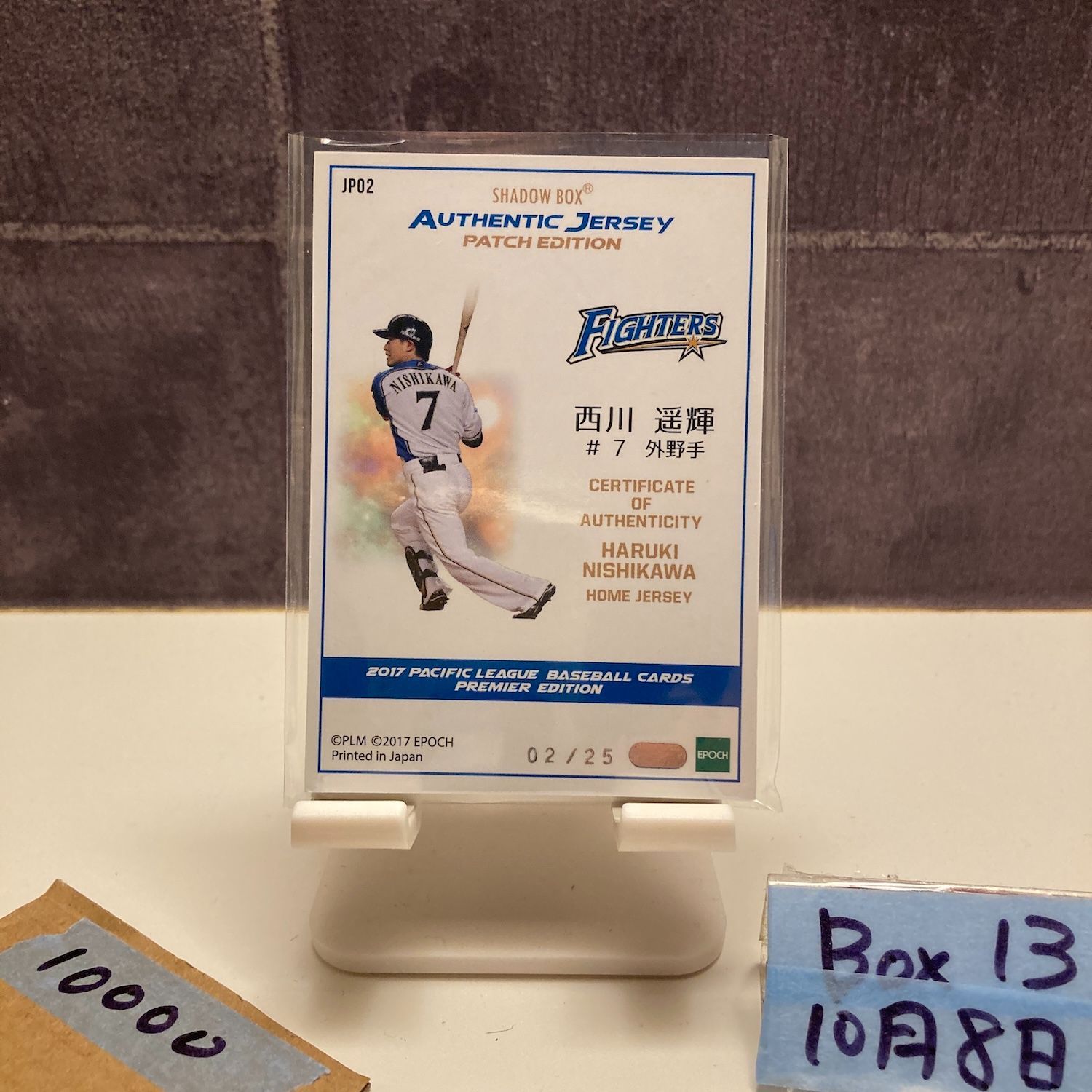 2017 EPOCH PREMIER EDITION 西川遥輝 02/25 サイン 北海道日本ハムファイターズ Shadow Box ジャージ パッチ