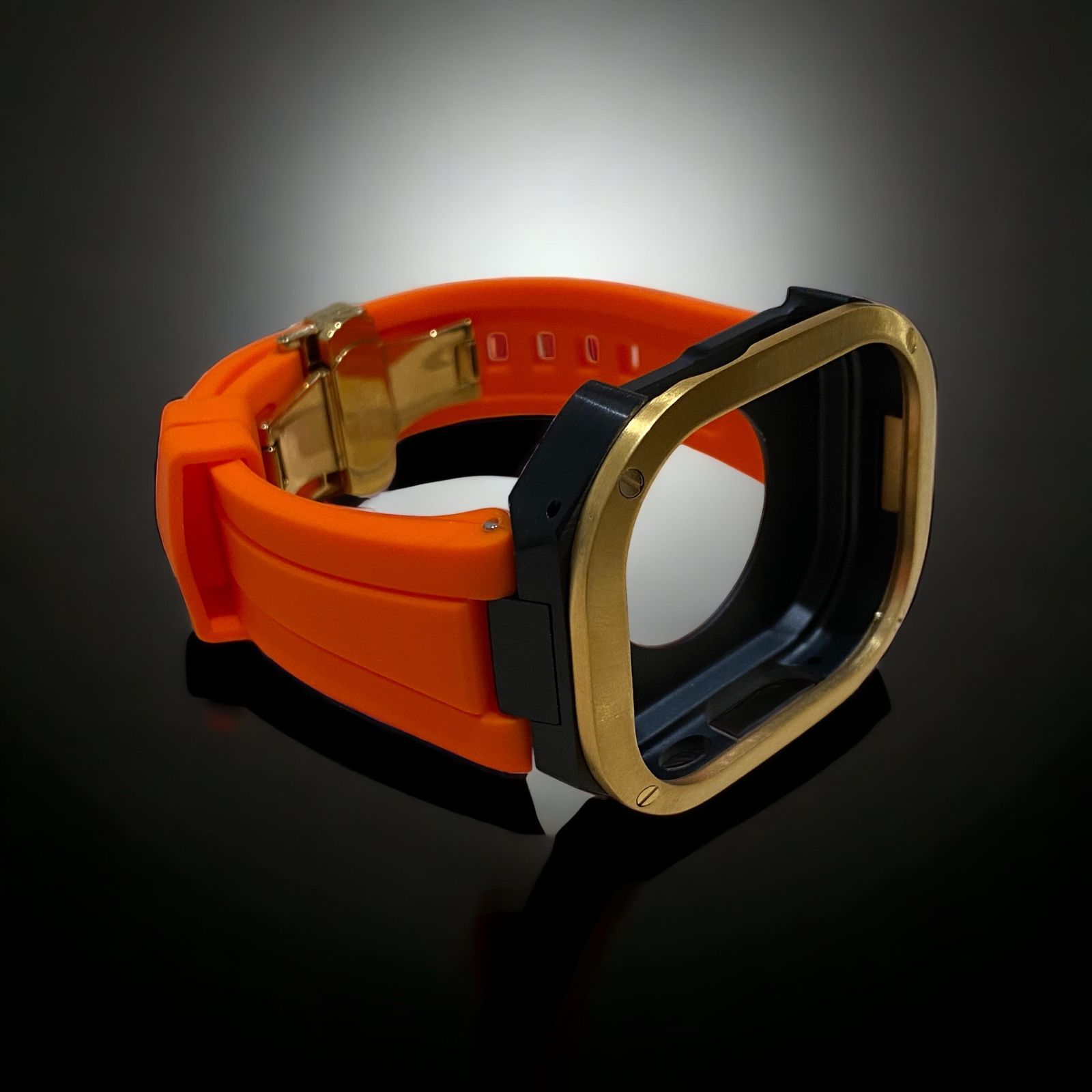 オレンジ×ゴールドブラック 49 mm apple watch ultraアップルウォッチラバーメタルカバーセット ウルトラ 49ミリ用 カスタム ultra 1 2 3