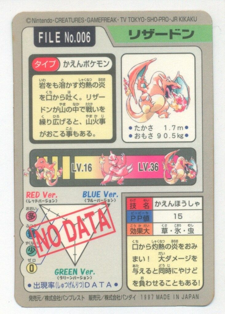 バンダイ ポケモン 本弾 青版 3弾 1997 リザードン キラ 6