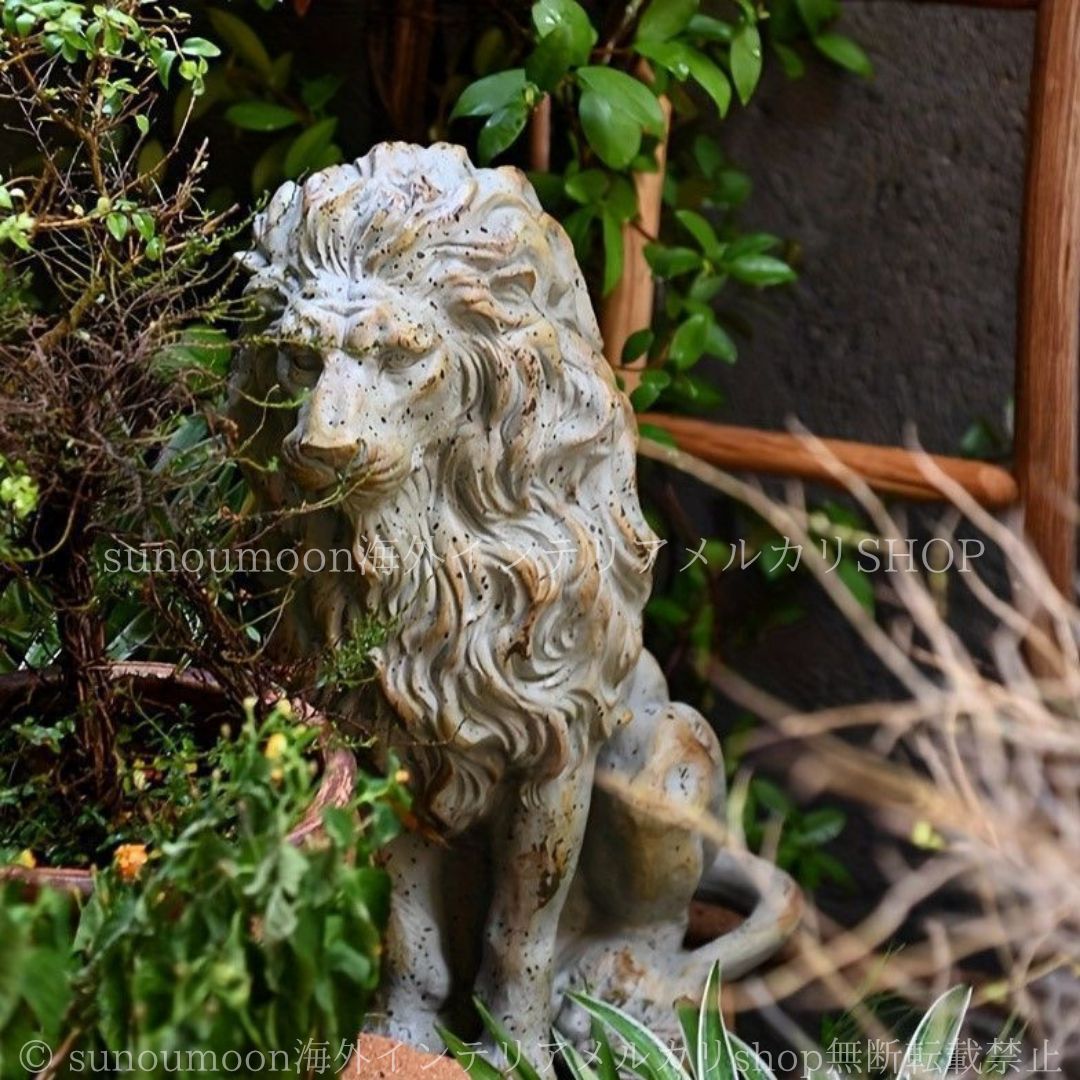 置物 オブジェ ガーデンオーナメント ライオン ヴィンテージ調 おしゃれ 動物 アニマル ガーデン ガーデニング 庭 玄関 テラス 4-7