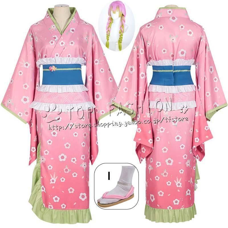 鬼滅の刃 きめつ の やいば 風 甘露寺 蜜璃 かんろじ みつり 着物 コスプレ衣装 ウィッグ 靴 道具