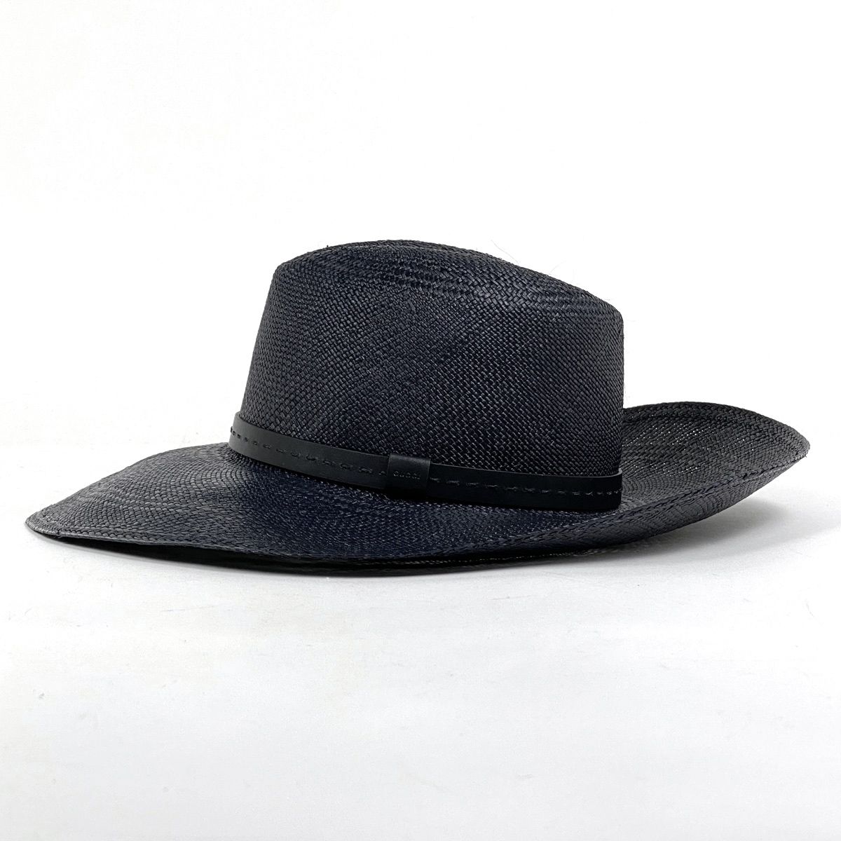 グッチ GUCCI ロゴ ハット 中折れ 麦わら帽子 その他帽子 ストロー レザー ネイビー レディース