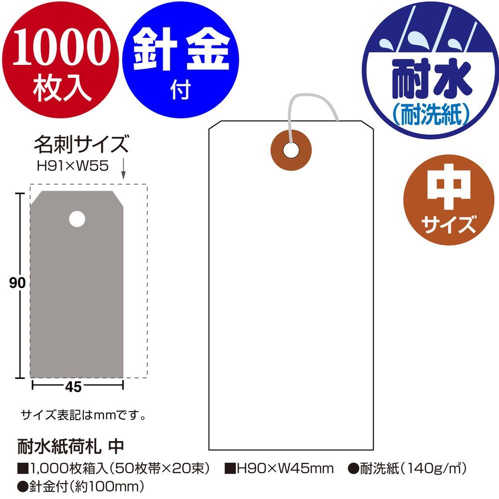 針金が付いた耐水紙を使用した荷札です。