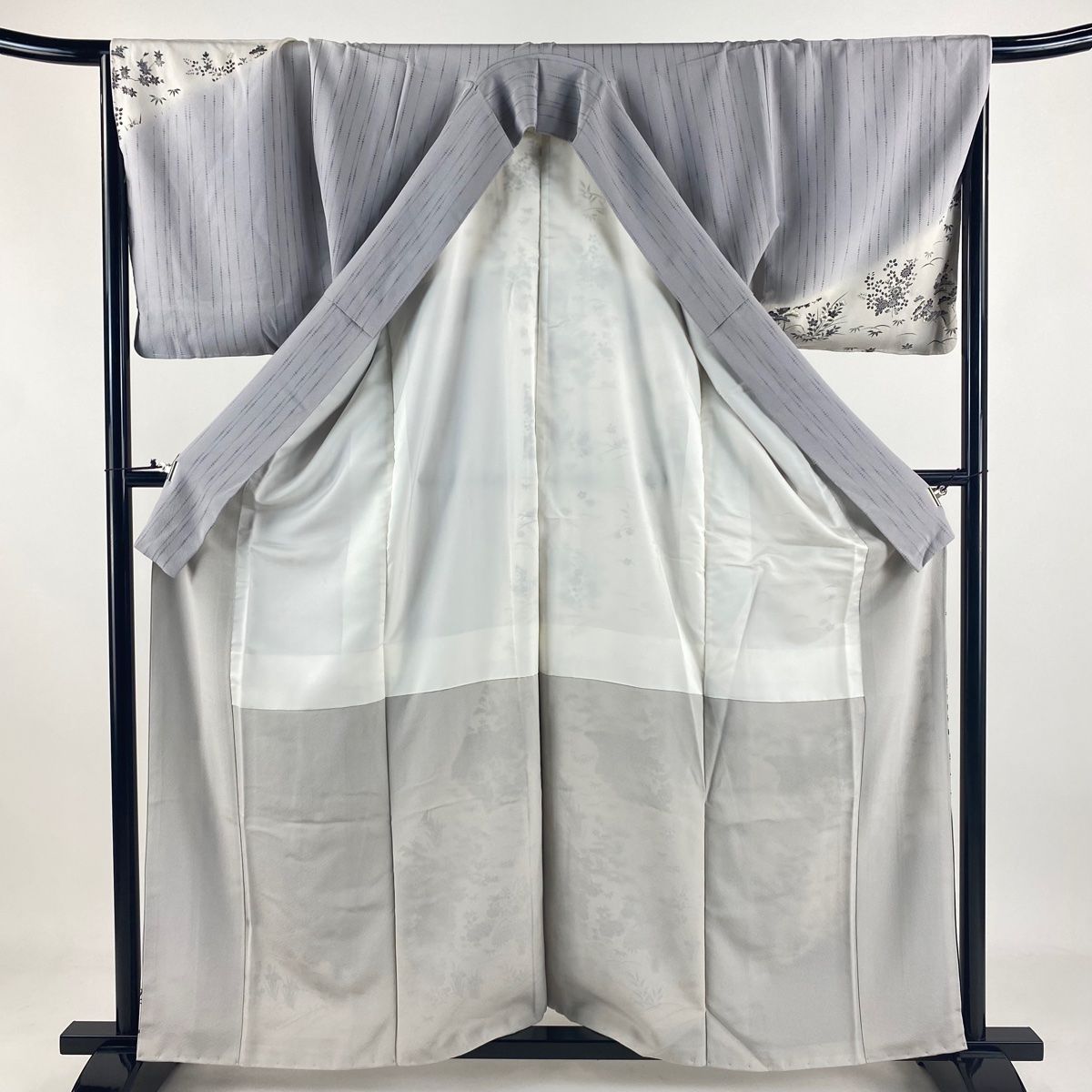 訪問着 身丈161 cm 裄丈67.5 L 袷 やまと 落款 御所車 松竹梅 金彩 ぼかし 灰色 正絹 秀品
