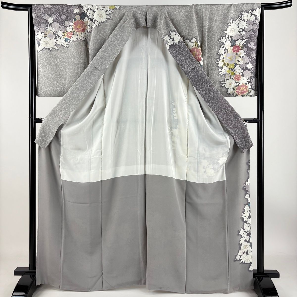 訪問着 身丈166.5 cm 裄丈66.5 M 袷 草花 金糸 金彩 灰紫 正絹 秀品
