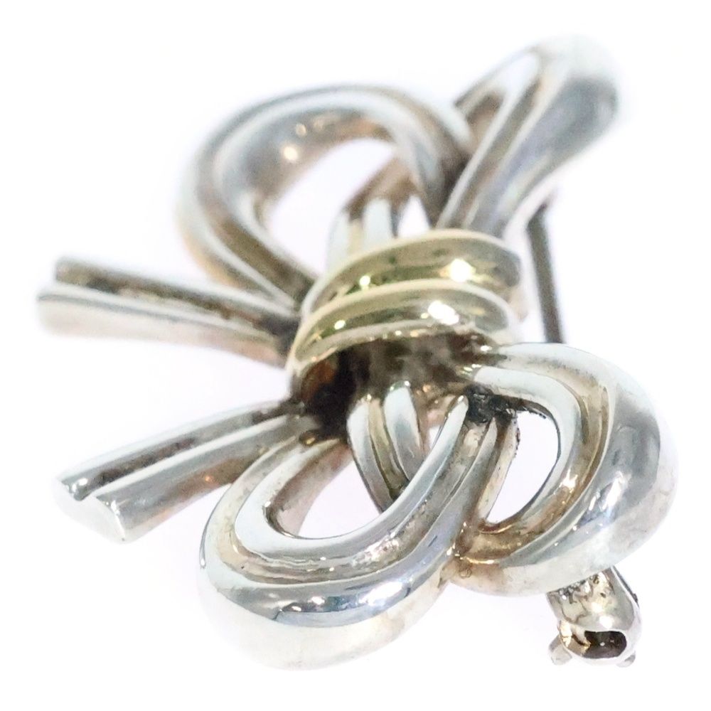 TIFFANY-Co ティファニー リボンモチーフ ブローチ ピンバッジ シルバー×ゴールド