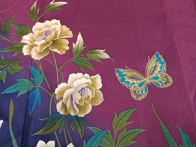 平和屋着物 染色作家 斉藤三才 訪問着 花蝶文 暈し染め 金彩 正絹 ph