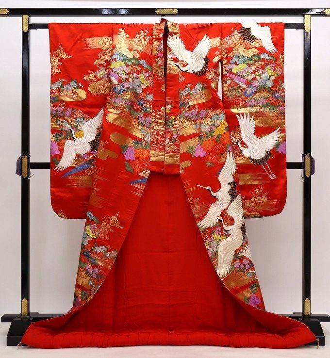 色打掛 和装 金 鶴 花畑 赤 ゴールド b 1804