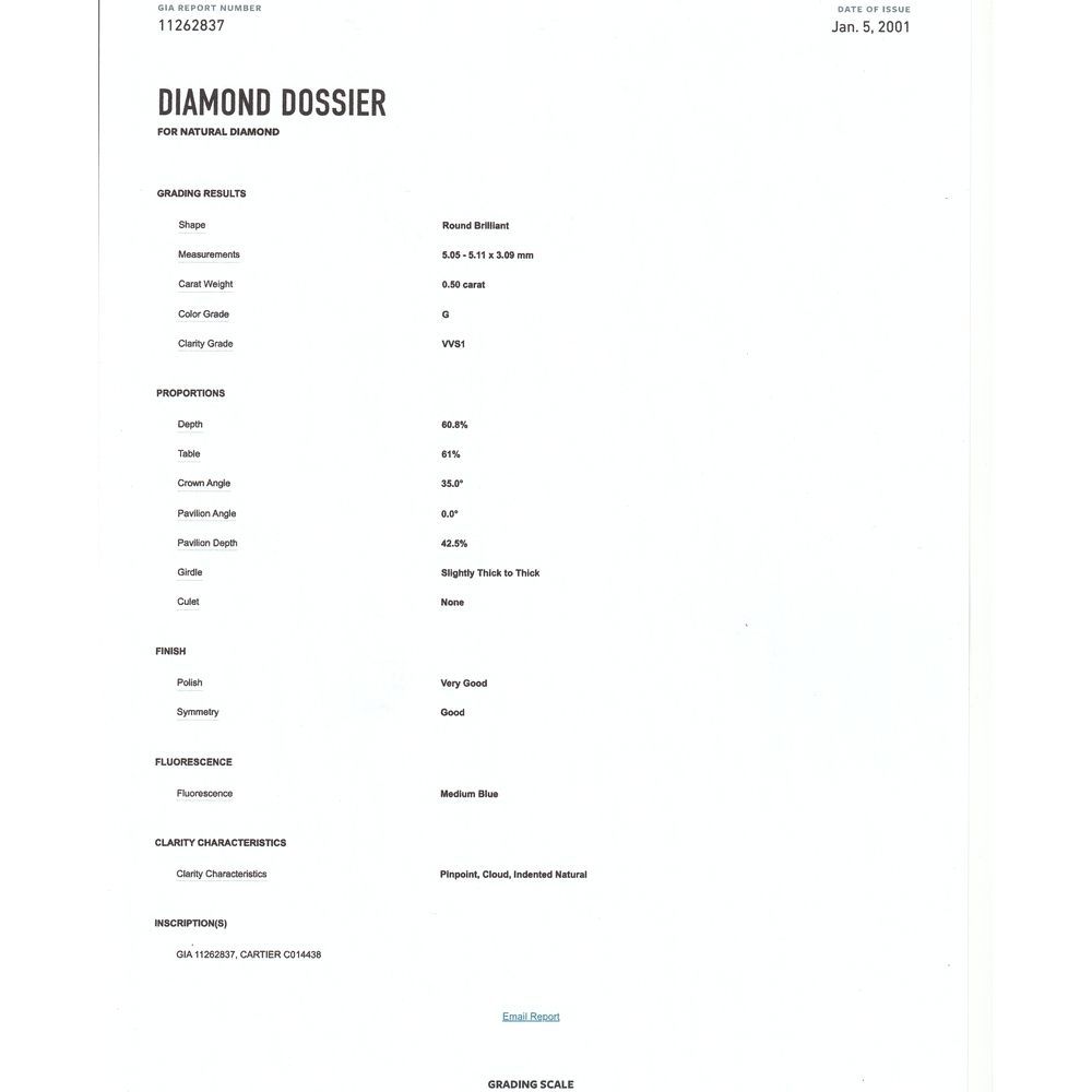 GIAレポートナンバーから、このダイヤモンドは、0.50ctで、Gカラー、VVS1だとわかります。