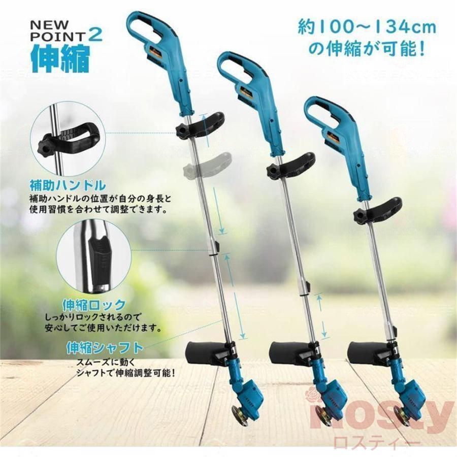 9インチ 草刈機 充電式 草刈り機 マキタ バッテリー互換 電動刈払機 伸縮式 コードレス グラストリマー 角度調整 替え刃付き 枝切り 軽量