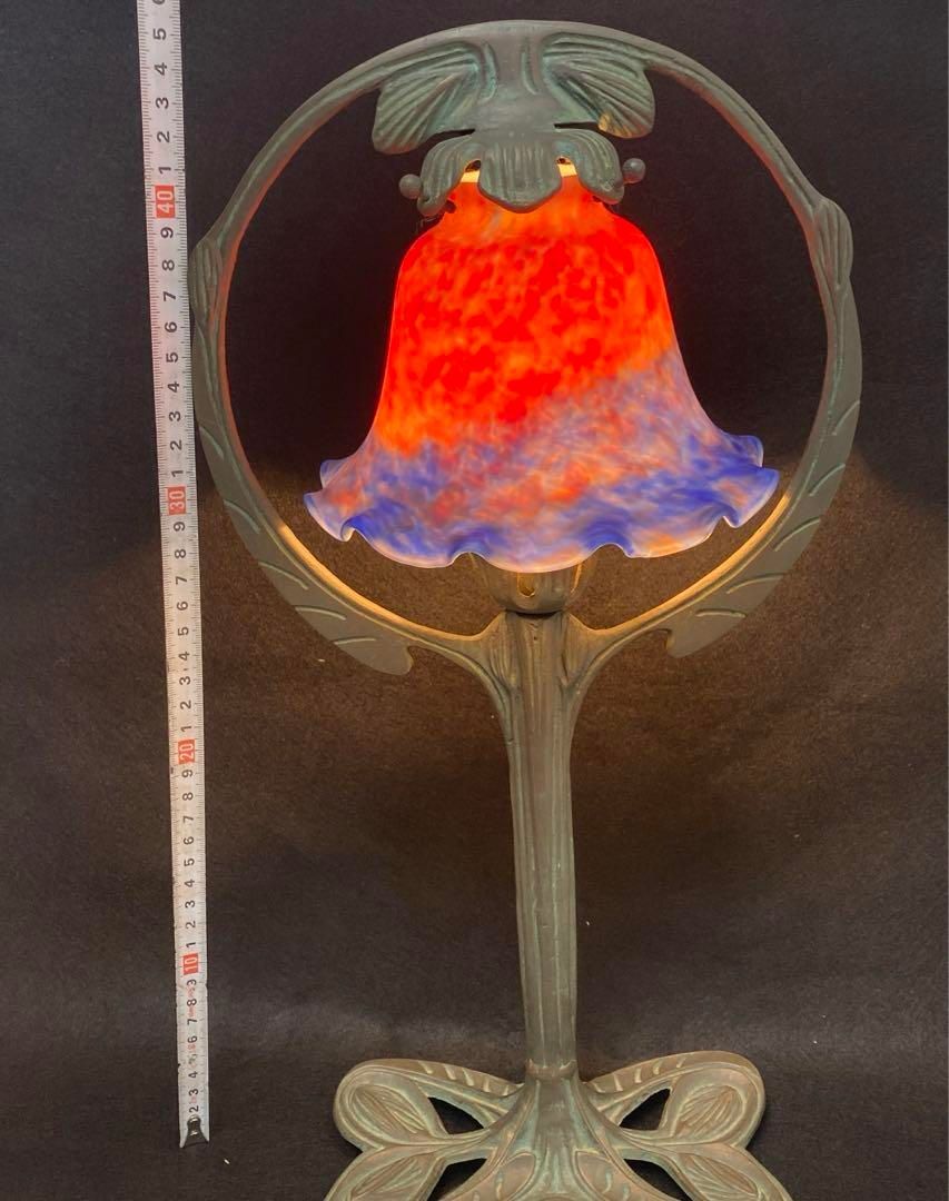 アンティーク フランス異色溶かし込ガラスランプ 高さ45㎝ 東Y 6-0710