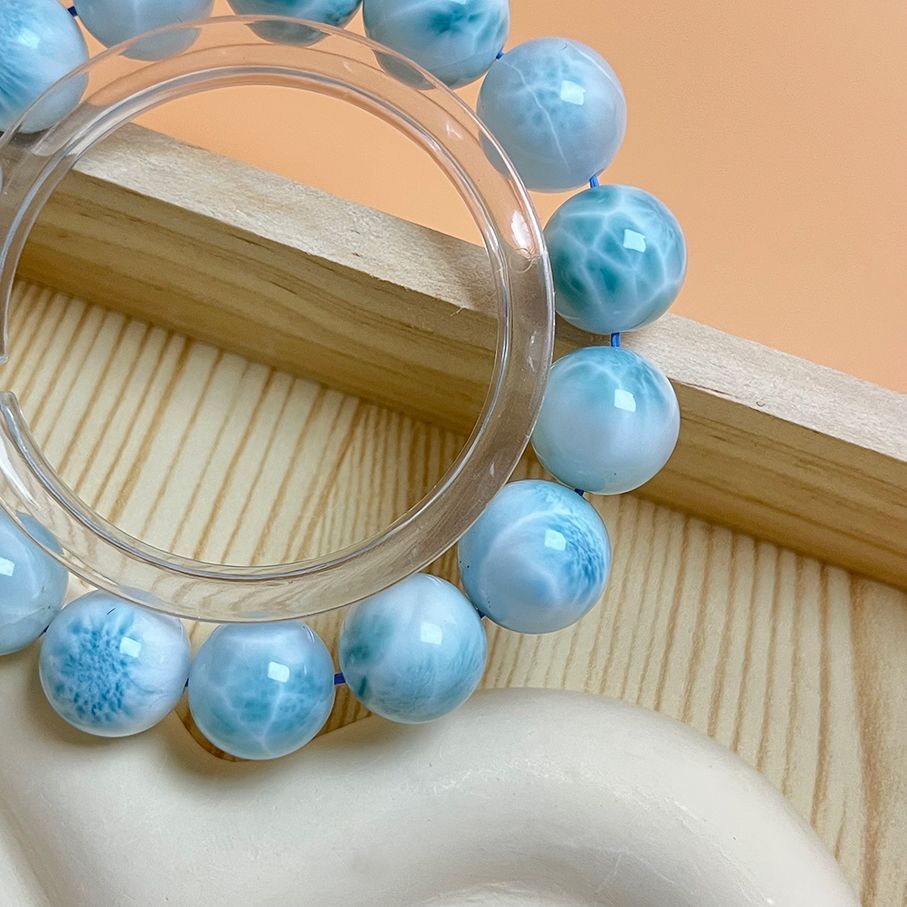 上級 EU製 ドミニカ共和国産のラリマー ペクトライト パワーストーン ブレスレット 天然石 開運 金運 プレゼント 約13.6-14.3 mm ZB 9468