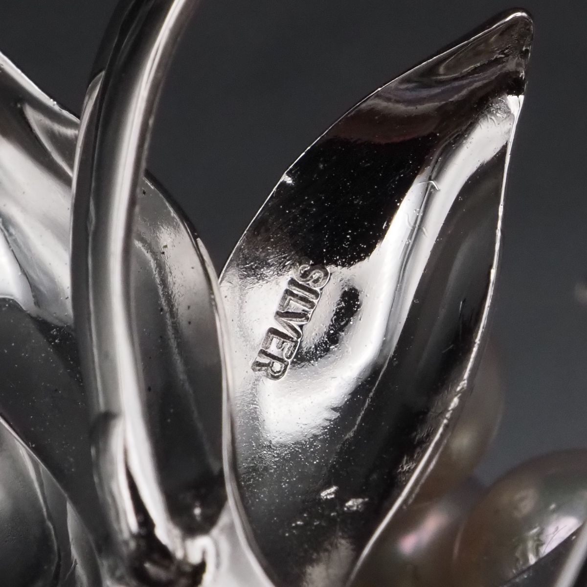F 059 本真珠 6.6 mm 11珠 パール SILVER刻印 ブローチ デザイン シルバー コサージュ 誕生石
