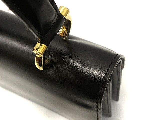 セリーヌ CELINE ダブルフラップ ハンドバッグ ヴィンテージ 黒 ブラック 革 レザー AA