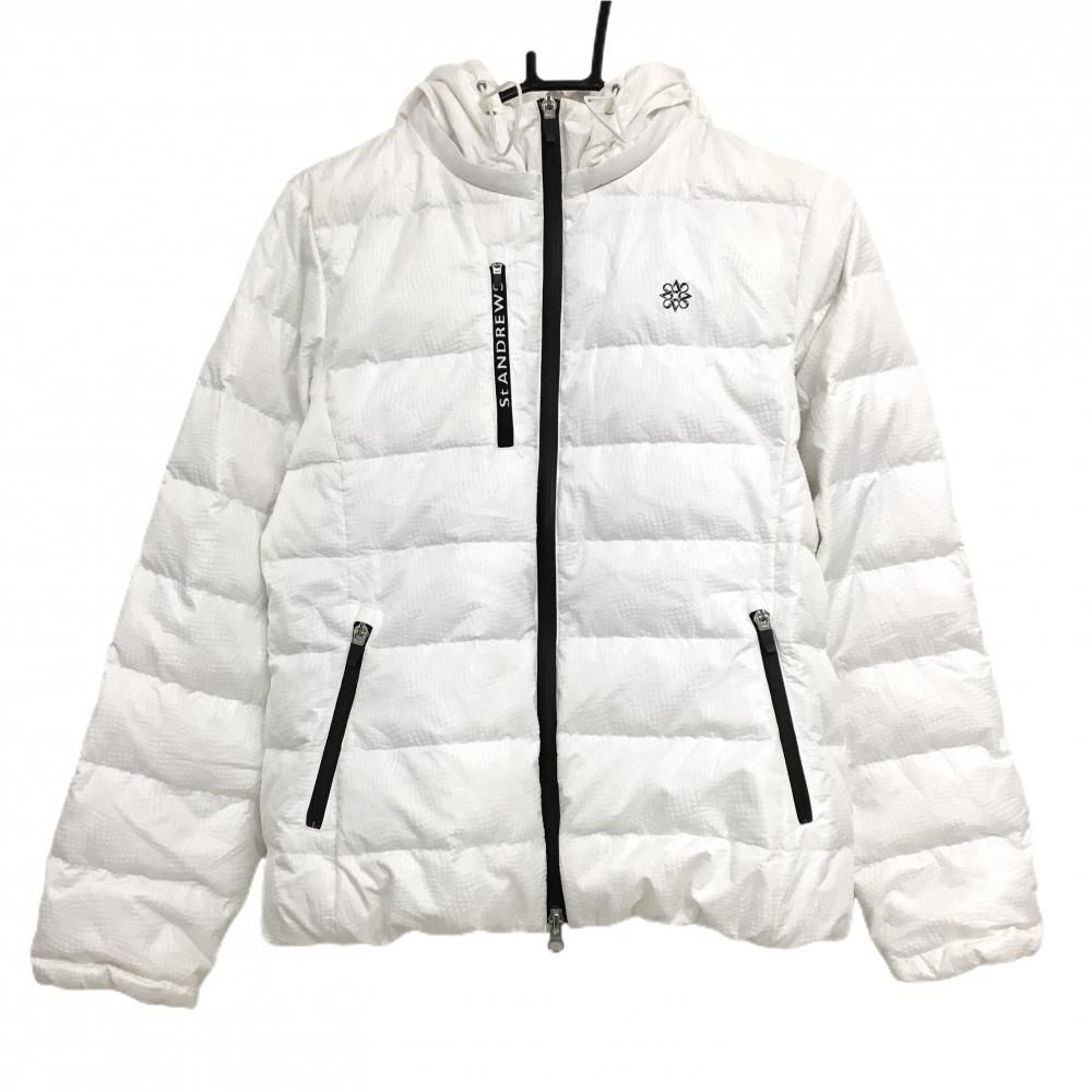 セントアンドリュース 2 WAYダウンジャケット 白 凹凸生地 蓄熱裏地 フード着脱可 レディース M ゴルフウェア St ANDREWS