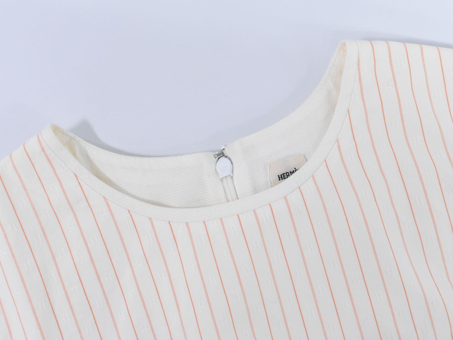エルメス HERMES ストライプ ブラウス シャツ ノースリーブ トップス 34 コットン アイボリー オレンジ レディース 衣類 洋服 フォロー割