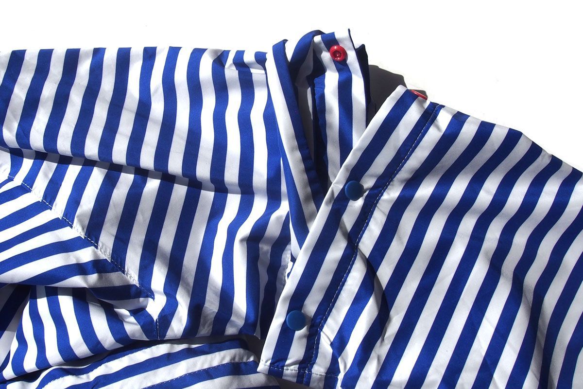 ブルー×ホワイトのボーダーに鮮やかなレッドを効かせたデザインは、スポーティーでありながら洗練された印象を演出。