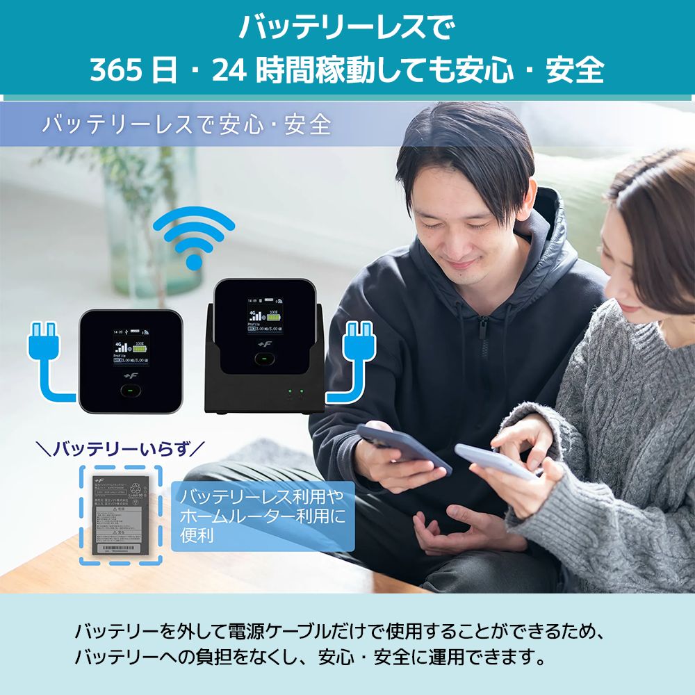 ・バッテリーレスで365日・24時間稼働しても安心・安全