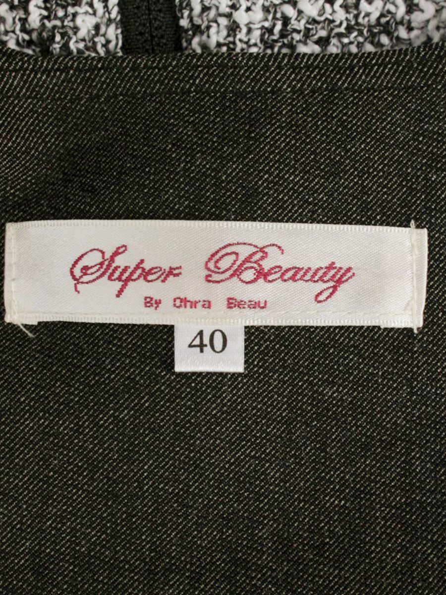 スーパービューティ ワンピース 40 グレー|ホワイト デニム パールワッペン ジップアップ