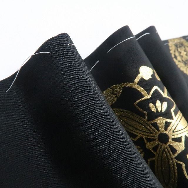 黒地に金色の華文を散りばめ、伝統に個性を添えた小紋でございます。