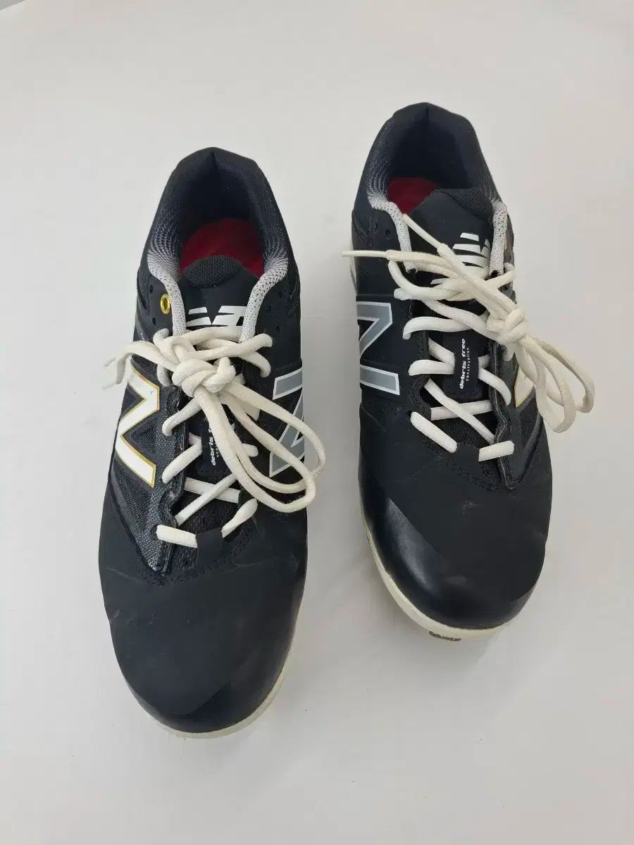 これはサイズ255のブラックニューバランスベースボールシューズです。靴底は履き心地が悪く、スタッズは写真のように良好な状態です。