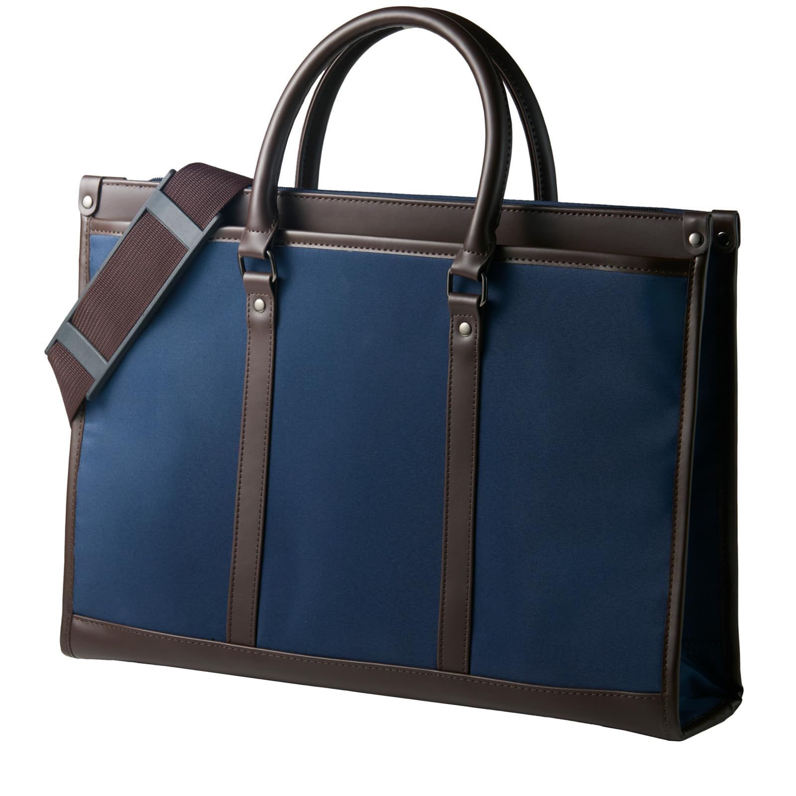 d.ネイビー(持ち手ブラウン) Stylish [グレヴィオ] 一流の鞄職人が作る ビジネスバッグ 就活バッグ リクルートバッグ 大容量 自立 出張 メンズ 男性 A4 父の日 ブラック ネイビー 黒 紺