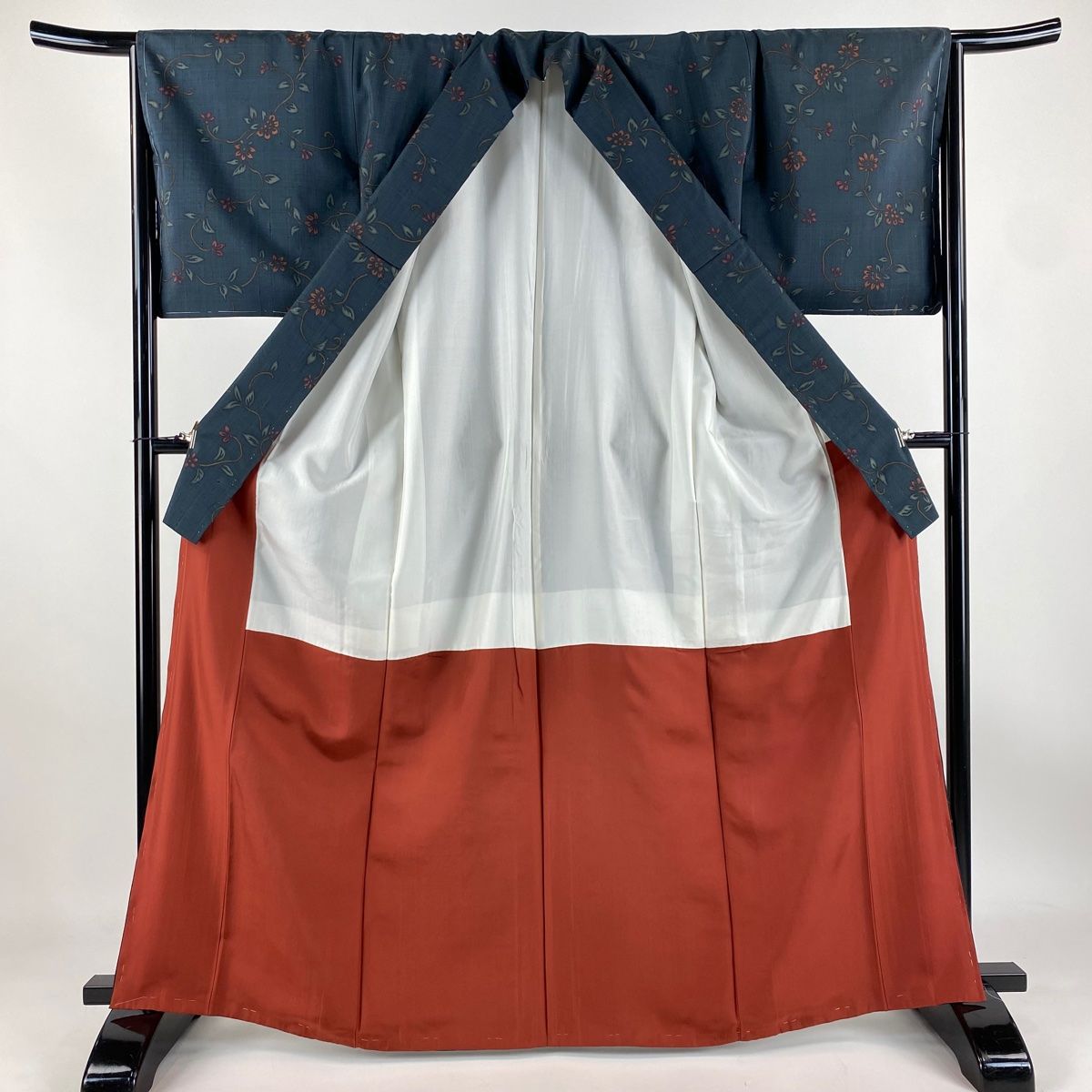 小紋 身丈165 cm 裄丈66 M 袷 紬地 草花 深緑 正絹 秀品