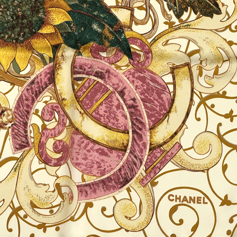 シャネル CHANEL スカーフ レディース ブランド ココマーク シルク イエロー マルチ ひまわり 花柄 総柄 大判
