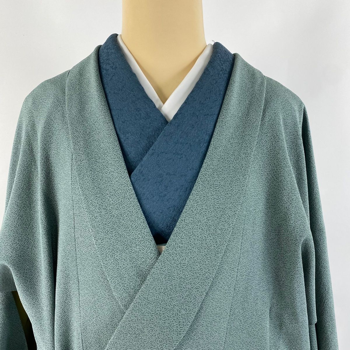 道中着 身丈97 cm 裄丈68 L 和装コート 江戸小紋柄 灰緑 正絹