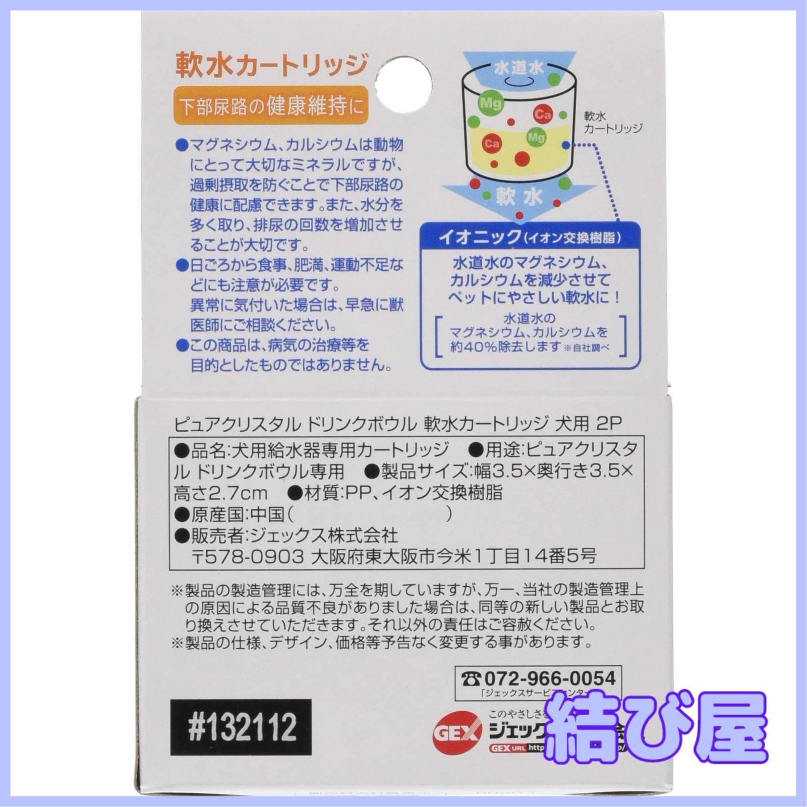 ・カルキ臭を吸着、抗菌活性炭配合でキレイを維持。 ・イオン交換樹脂で水道水のマグネシウム、カルシウムを除去して犬にやさしい水に! ・マグネシウム、カルシウムは動物にとって大切なミネラルですが、過剰摂取を防ぐことで下部尿路の健康に配慮できます。 ・お得な2個入。