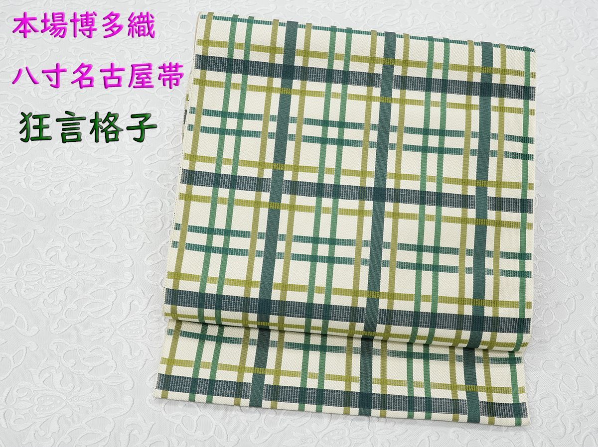 きものサロン掲載柄 博多帯 八寸名古屋帯 狂言格子 クリーム地 仕立代込