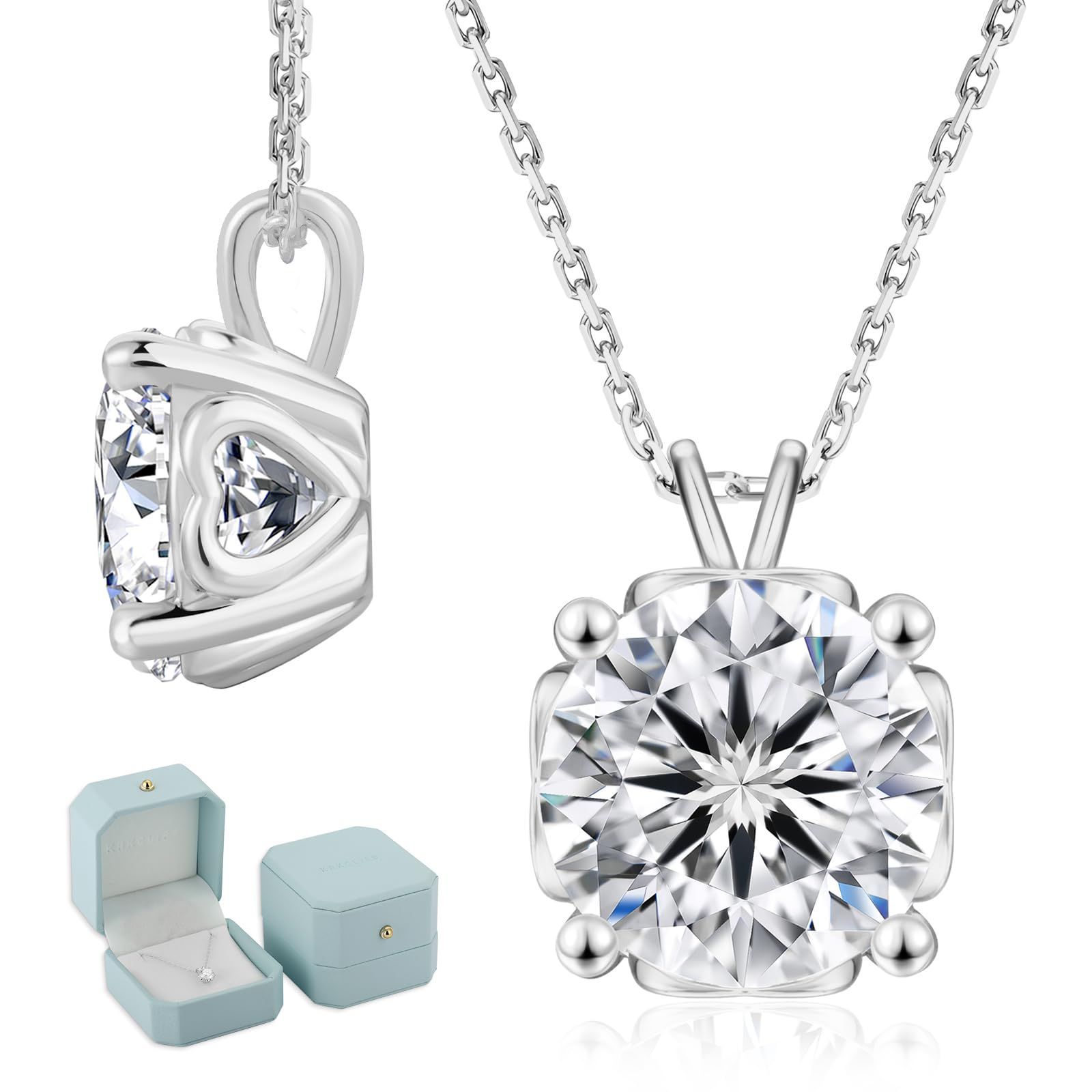 KRKC&CO モアッサナイト ネックレス: S925シルバー レディース ハートの透かし ペンダントネックレス 一粒ダイヤ 0.5/1.0/2.0/3.0/4.0ct 金属アレルギー対応 4本爪 ホワイト/イエローゴールドメッキ 誕生日 記念日プレゼント 女性ギフト 長さ調節 45+5cm