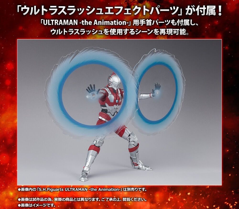 さらに、ボーナスパーツとして「ULTRAMAN -the Animation-」(別売り)用の「ウルトラスラッシュエフェクトパーツ」と「手首パーツ」が付属。
