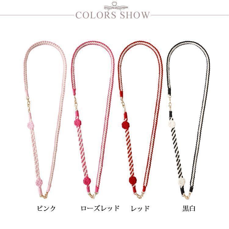 ネックストラップ スマホ 2 way ハンドストラップ 首掛け ストラップ 太め カラフル 花 肩掛け 紐 ロープハンドル 斜めがけ 配色 バイ ショルダーストラップ フラワー 編み 手編 tomin 598423