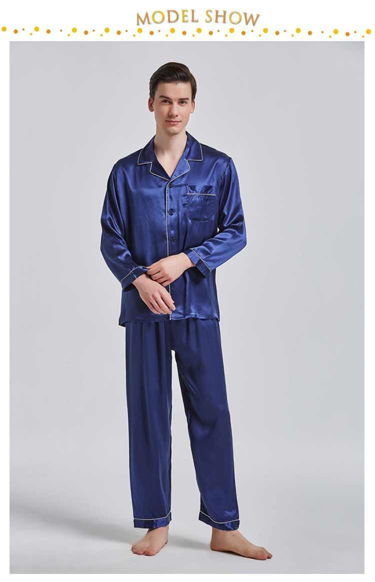 敬老の日 パンツ パジャマ ロング 寝間着 長袖 前開き シルクパジャマ セットアップ ルームウェア 快眠 敏感肌 部屋着 ナイトウェア 上下セット 彼氏 シルク メンズ ギフト プレゼント rZwu 524